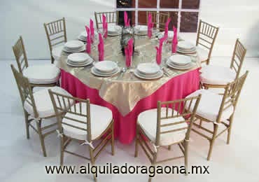 Incluye la Renta de 10 Sillas Tiffany, una Mesa con Mantel de Color y Cubre Mantel